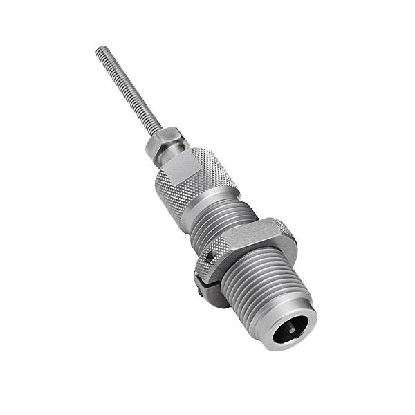 This Neck Sizer die features a polished elliptical expander, that significantly reduces case neck stretch. The hardened steel decapping pin will not bend or break, even when de-priming cases with a crimped primer pocket. The Neck Sizer Die also features a Zip Spindle, with a series of light threads cut on the spindle and spindle collet eliminating spindle slippage and makes tightening the spindle lock simple when adjusting.