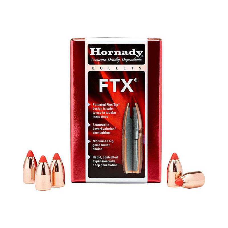 Hornady® FTX® bullets revolutionized lever gun ballistics, creating a new level of performance for these popular firearms. Lever gun enthusiasts can now harness the accuracy, power and long-range performance of a tipped bullet that's safe to load in tubular magazines.