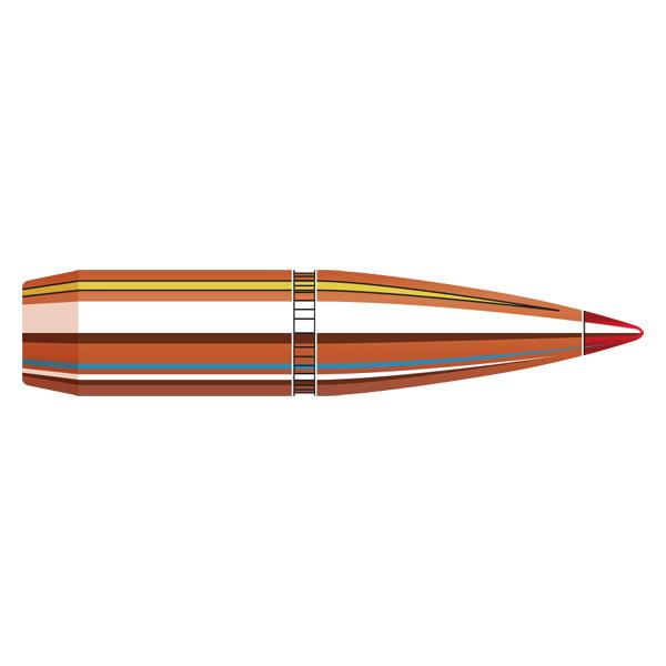 This Hornady exclusive design mechanically locks the core and jacket together to maintain bullet integrity during expansion, ensuring maximum weight retention and increasing the chances of complete pass-throughs.